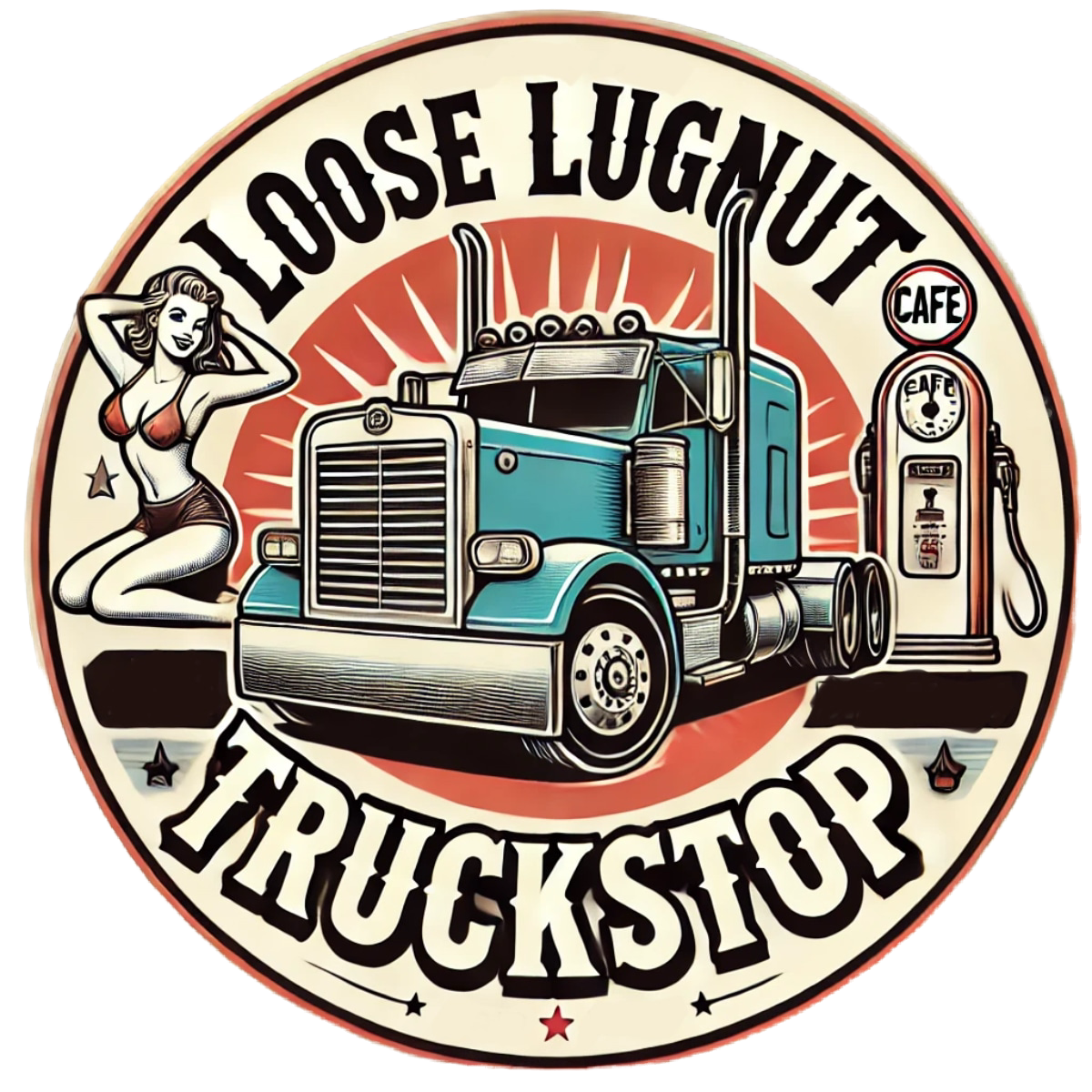 Welcome to the Loose Lugnut Truckstop—the legendary, off-the-beaten-path pit stop where greasy burgers meet greasy characters, and chaos reigns just the way we like it. This ain't your average rest stop—it's the official headquarters of the unhinged genius behind the Trashy Trucker T-Shirt Company.